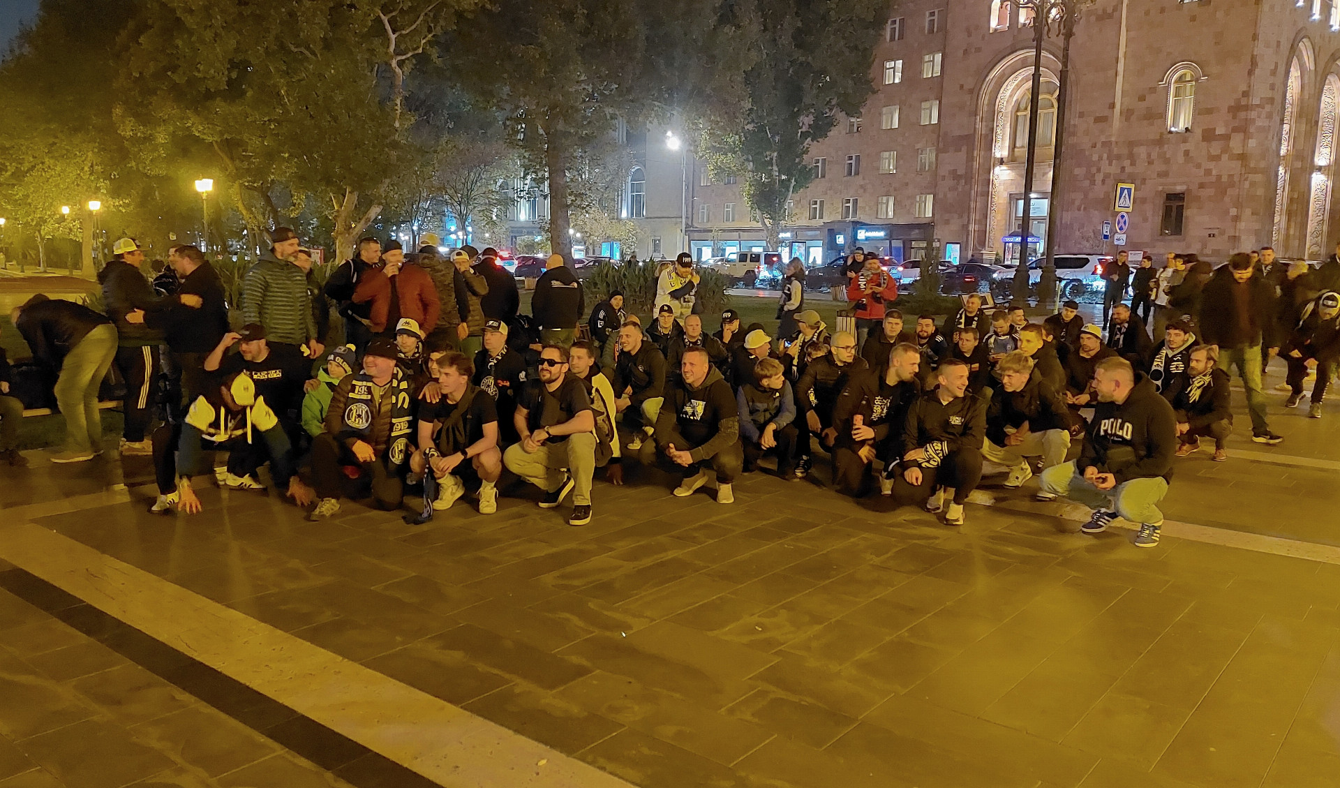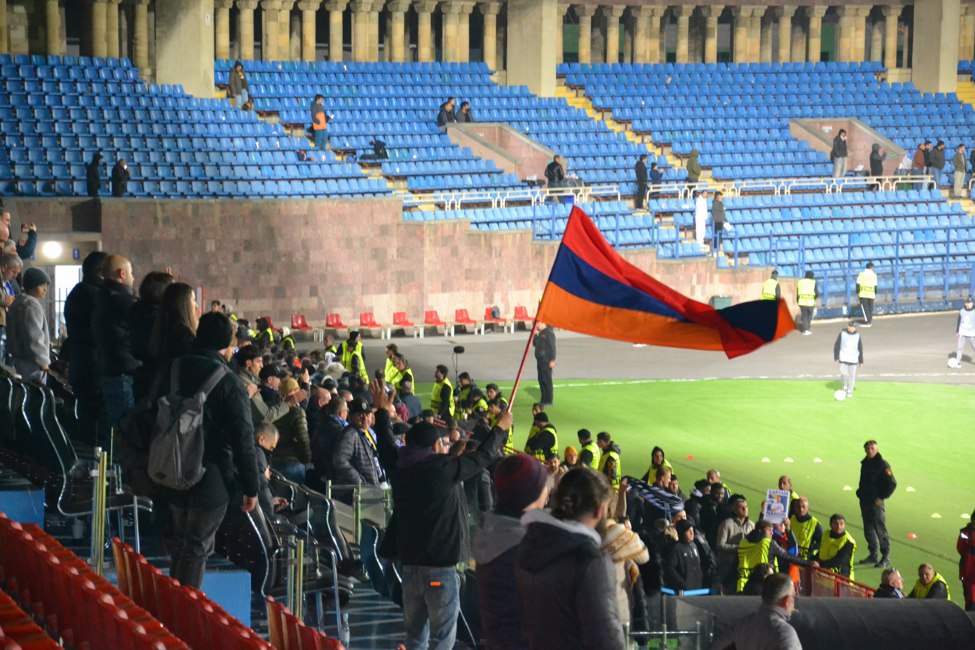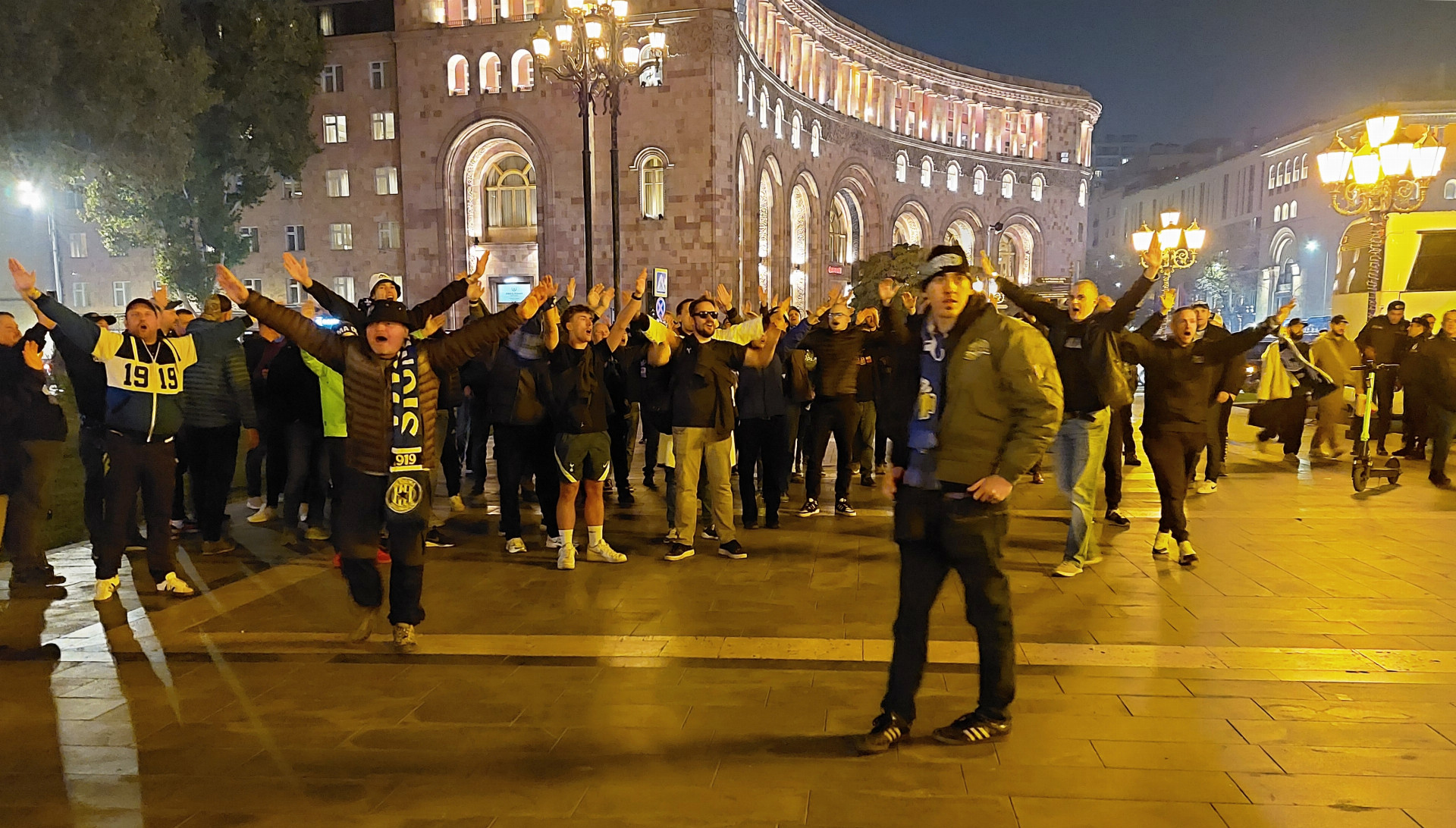 Vadila někde ve městě ona šála klubu, který měl večer vyzvat arménského mistra? Kromě překvapivého setkání s Madriďanem Zachariasem nevyvolala žádnou interakci, pomineme-li pár zvídavých pohledů. Ani v ulicích, ani v baru, kde proběhlo nezbytné ochutnání slavného arménského koňaku. Šéf jednoho večerního podniku dokonce velkoryse popřál úspěch „mému“ týmu. Nejsem si jistý, jestli by stejně přátelsky dopadla taková vycházka třeba po noční Ostravě… I na stadionu seděli domácí fandové přímo vedle novinářů, tudíž mohlo dojít k „přímé interakci“. Občas sice po modrobílé šále pokukovali, ale kromě prosby, zda ji nemohu jednomu z místních po zápase věnovat, se nedělo nic. Takže tolerantní a dobrosrdeční lidé.