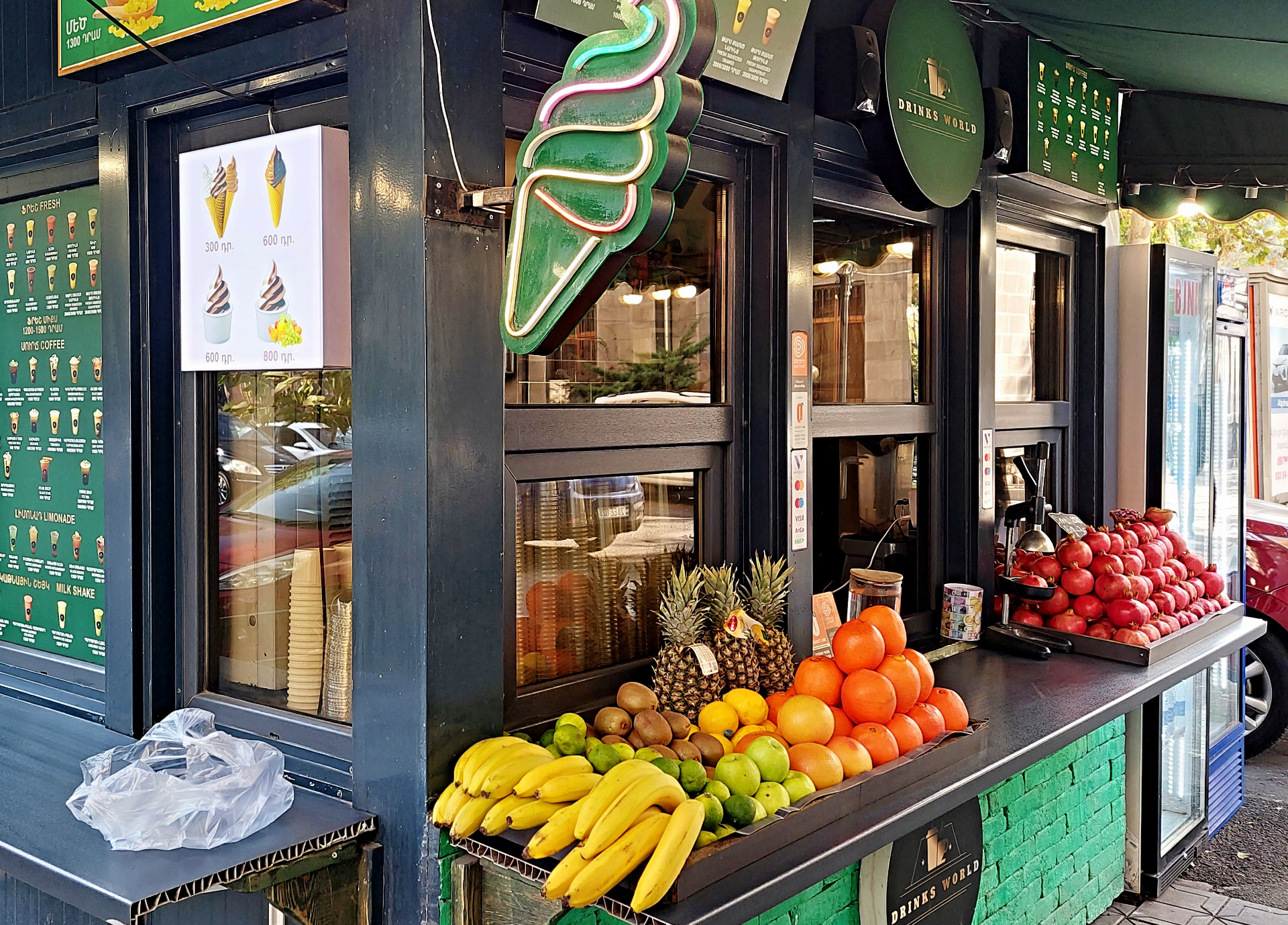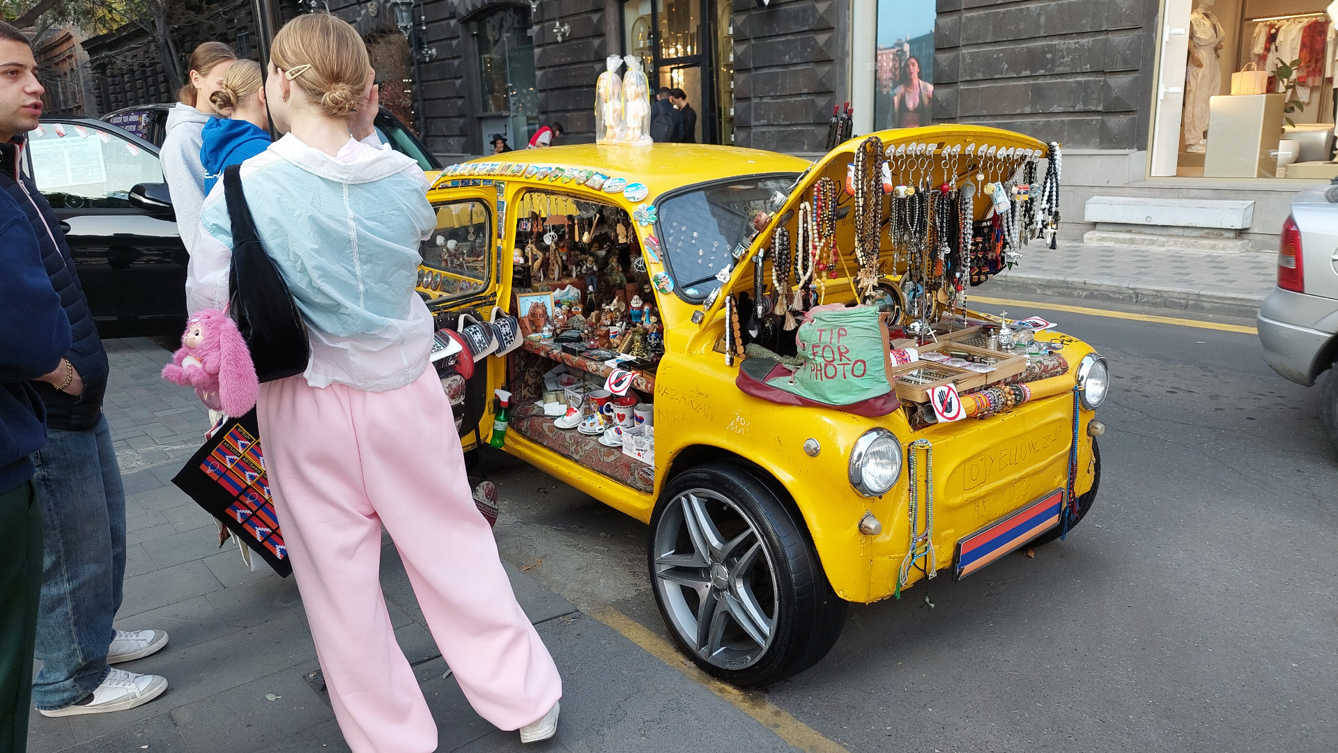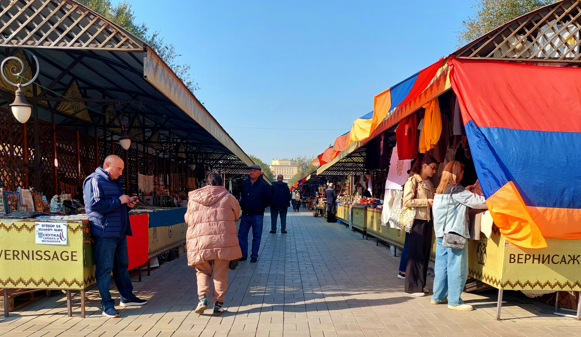 Na tržišti se kupodivu nekřičí. Prodejci jsou klidní až flegmatičtí. Trochu jako pavouci číhající v rohu sítě. Když tudy třeba ve čtvrtek večer prochází a skanduje zástup fandů Sigmy, dědové s placatými čepicemi nehnou brvou a dál hrají své vrhcáby nebo šachy. Ovšem zkuste se na chvilku zastavit u některého stánku a projevit sebemenší zájem o zboží, okamžitě se dostanete pod soustředěný útok. Nerozumíte arménsky ani rusky? Nevadí! Vypomůže soused z vedlejšího stánku se základy angličtiny. Nemáte hotovost? Nevadí, támhle je bankomat. Půjdu s vámi, pane!