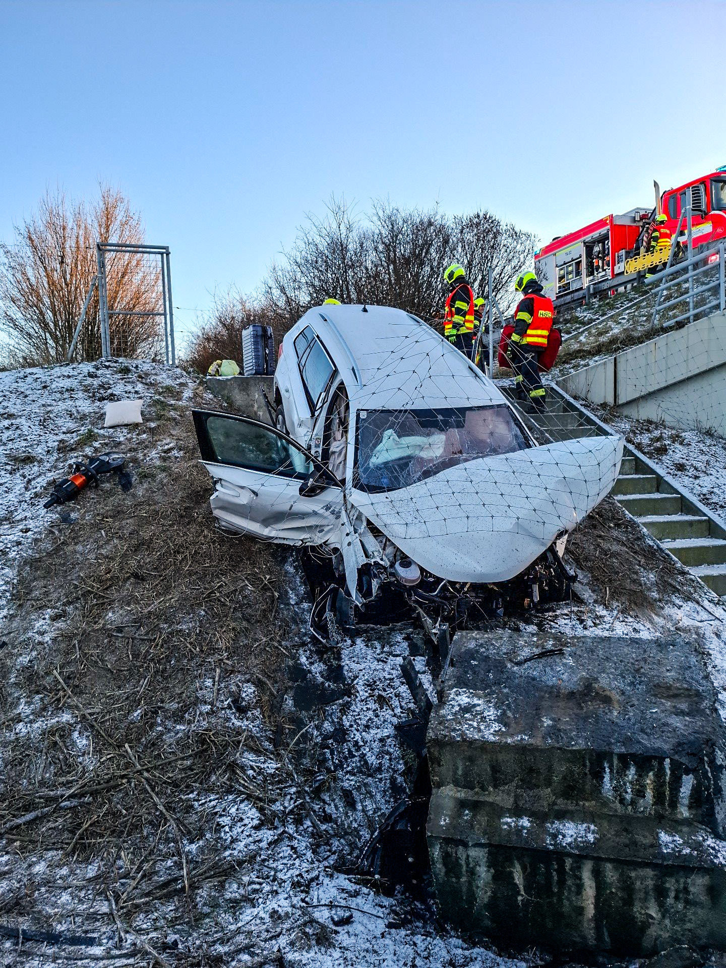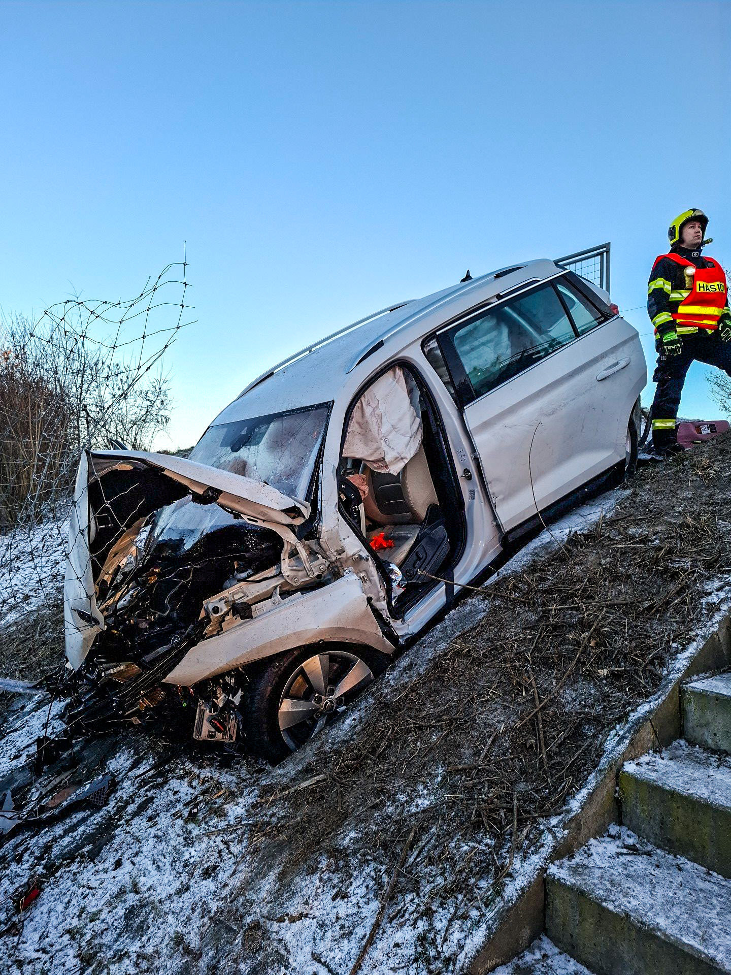 Hasiči v úterý ráno 30. prosince zasahovali u dopravní nehody osobního automobilu na dálnici D35 na 276,7. kilometru u Velkého Týnce. Automobil skončil ve svahu mimo dálnici. Po nárazu zůstaly ve vozidle zaklíněné čtyři osoby.