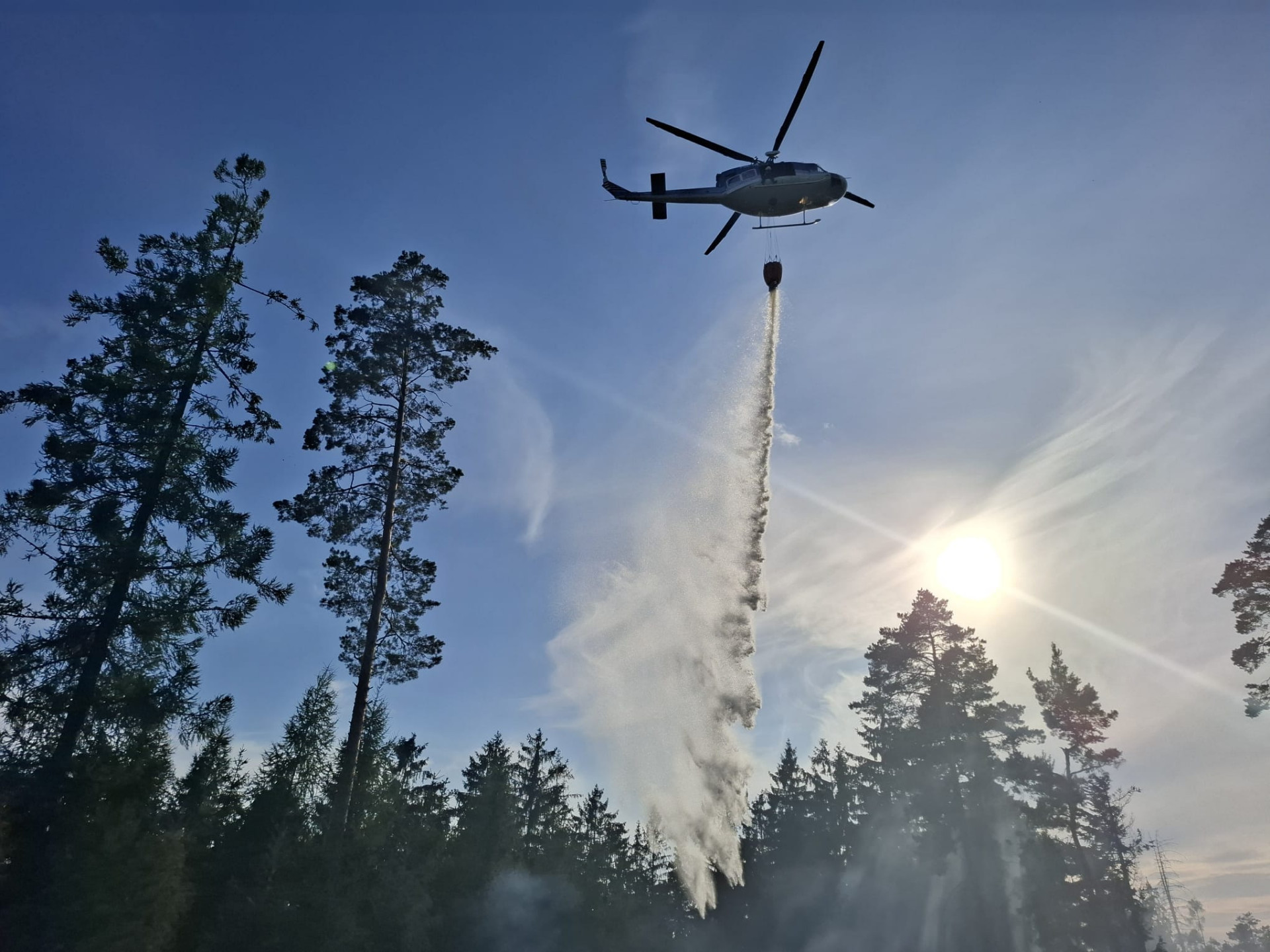 Zásah hasičům komplikoval náročný terén, snadné nebylo ani dopravování potřebné vody. Byl proto povolán vrtulník s bambivakem a dron s termokamerou.
