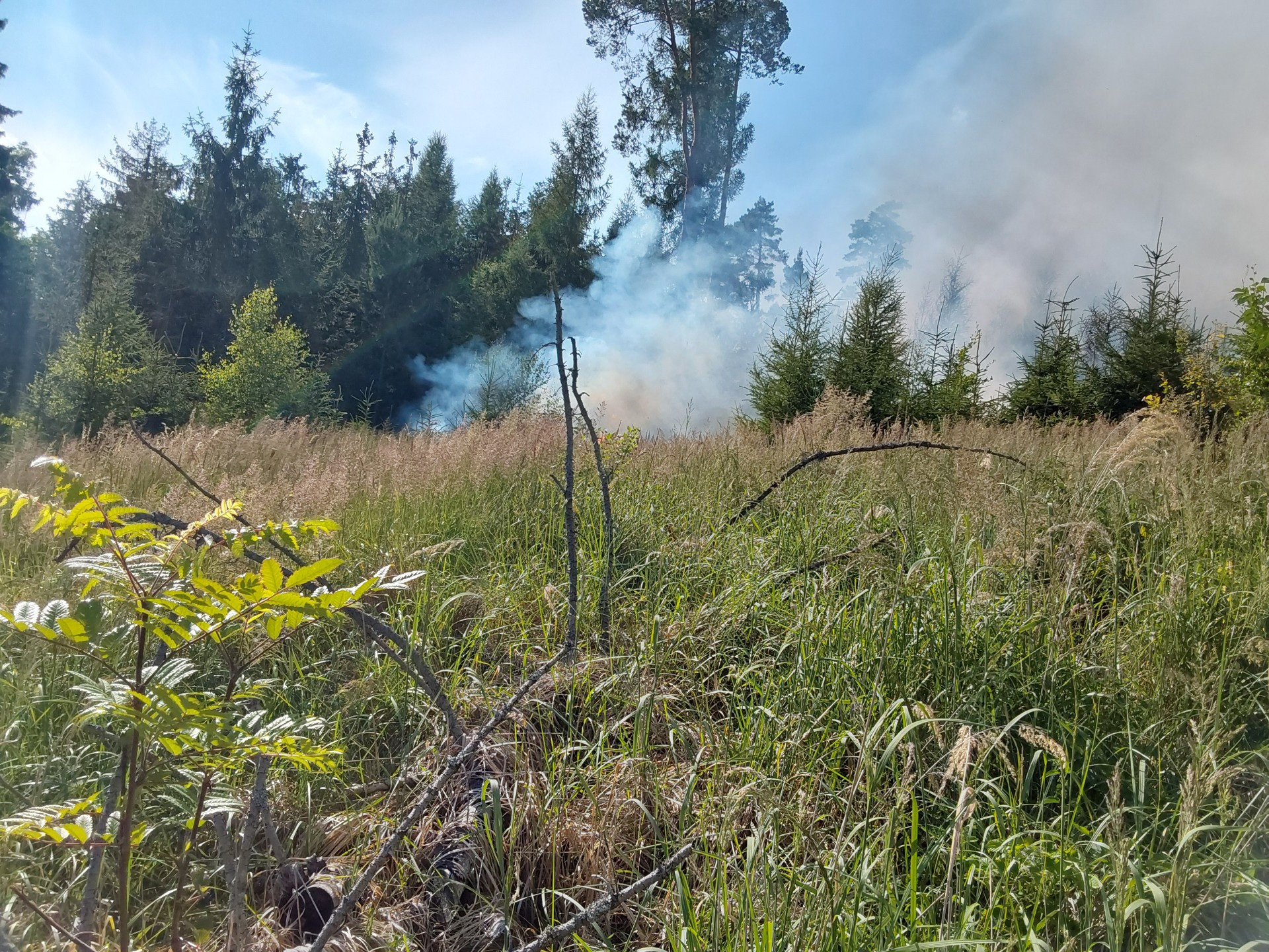 Sucho a horko hrozí lesními požáry. Jeden takový zaměstnal profesionální i dobrovolné hasiče v sobotu pozdě odpoledne a večer. U Bludova totiž hořela rozsáhlá lesní plocha, ke které měli hasiči navíc velmi těžký přístup.