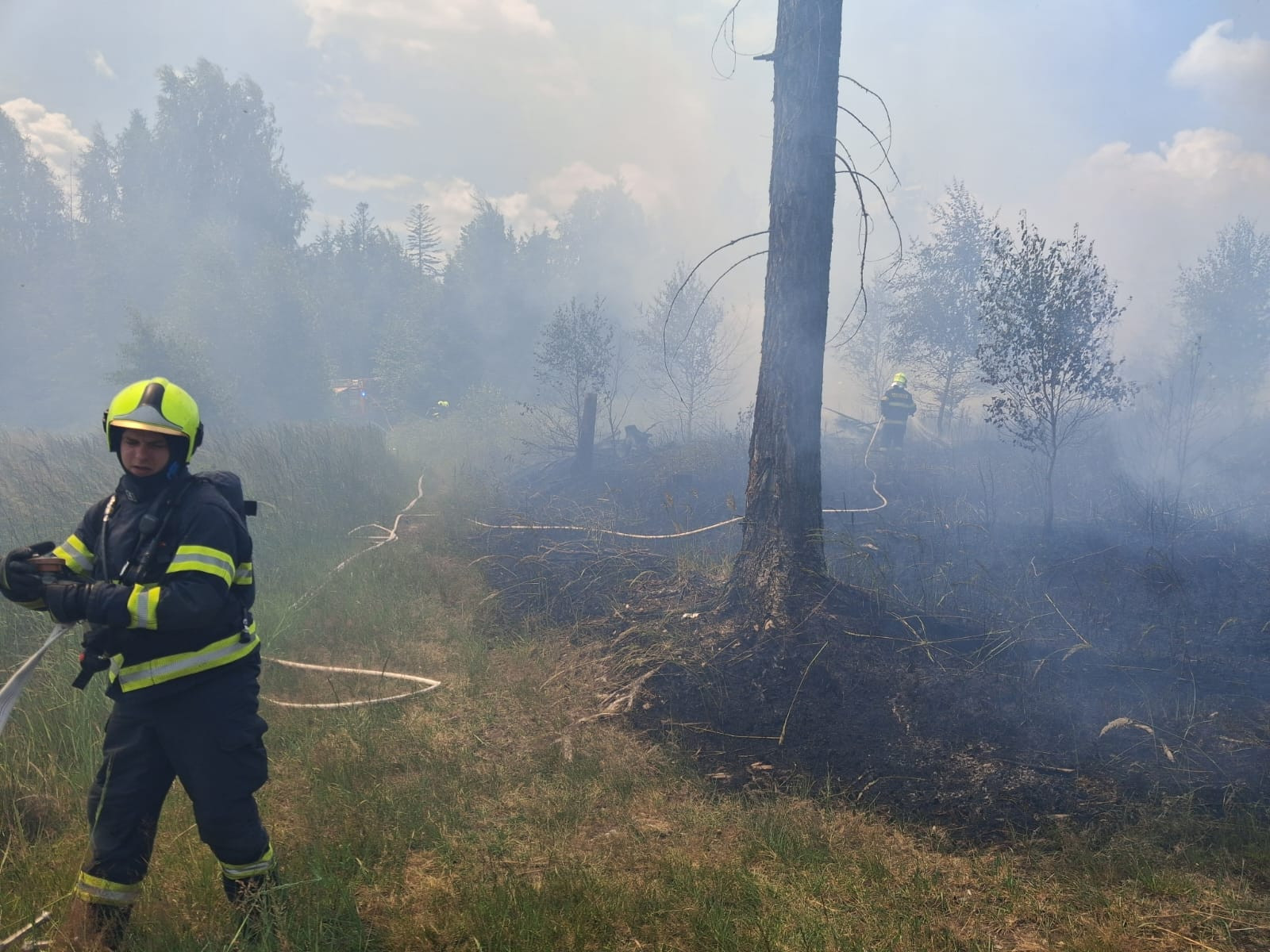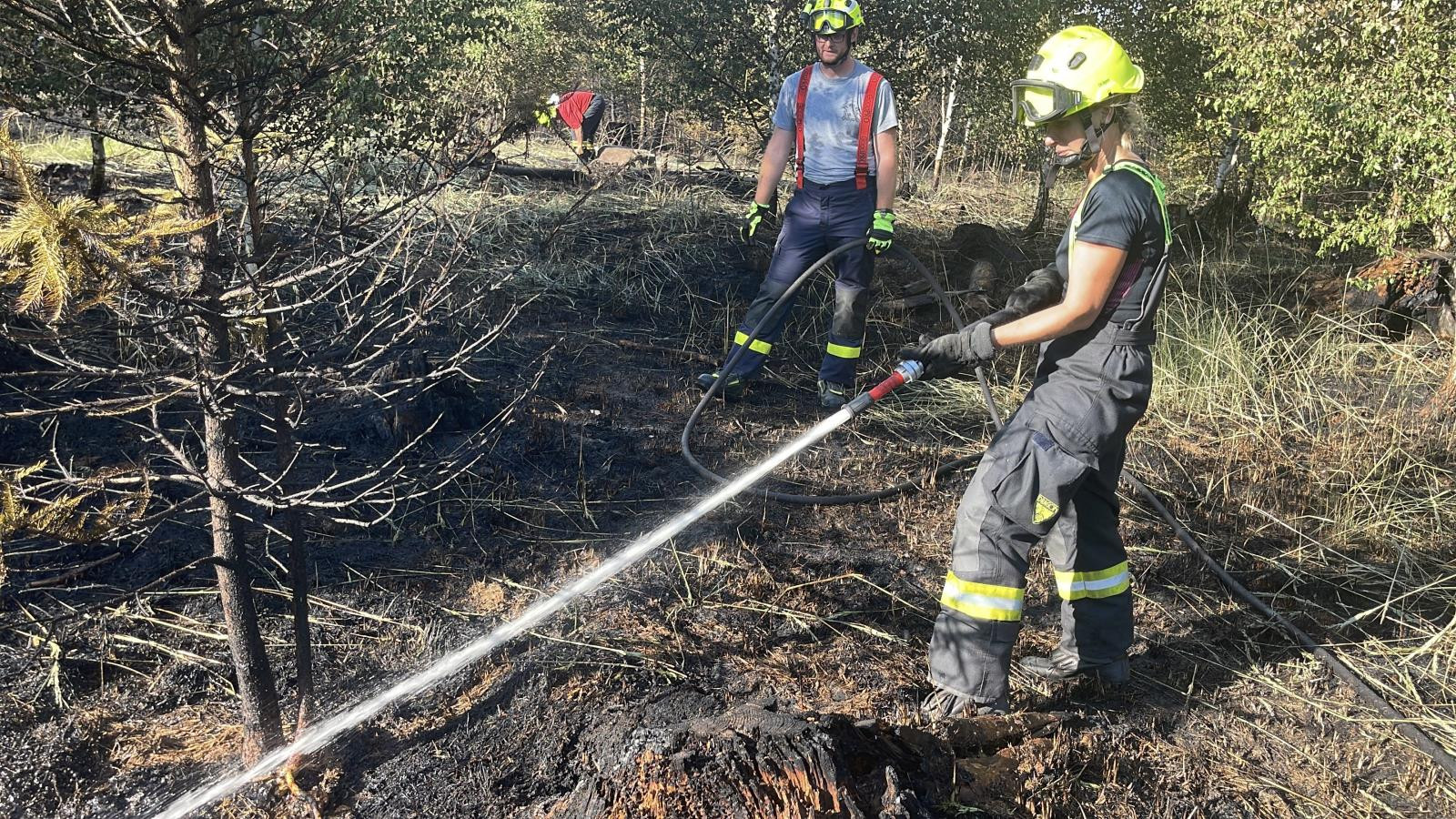 HOŘÍCÍ LES Lesní požár zaměstnal desítky hasičů, do akce musel i vrtulník
