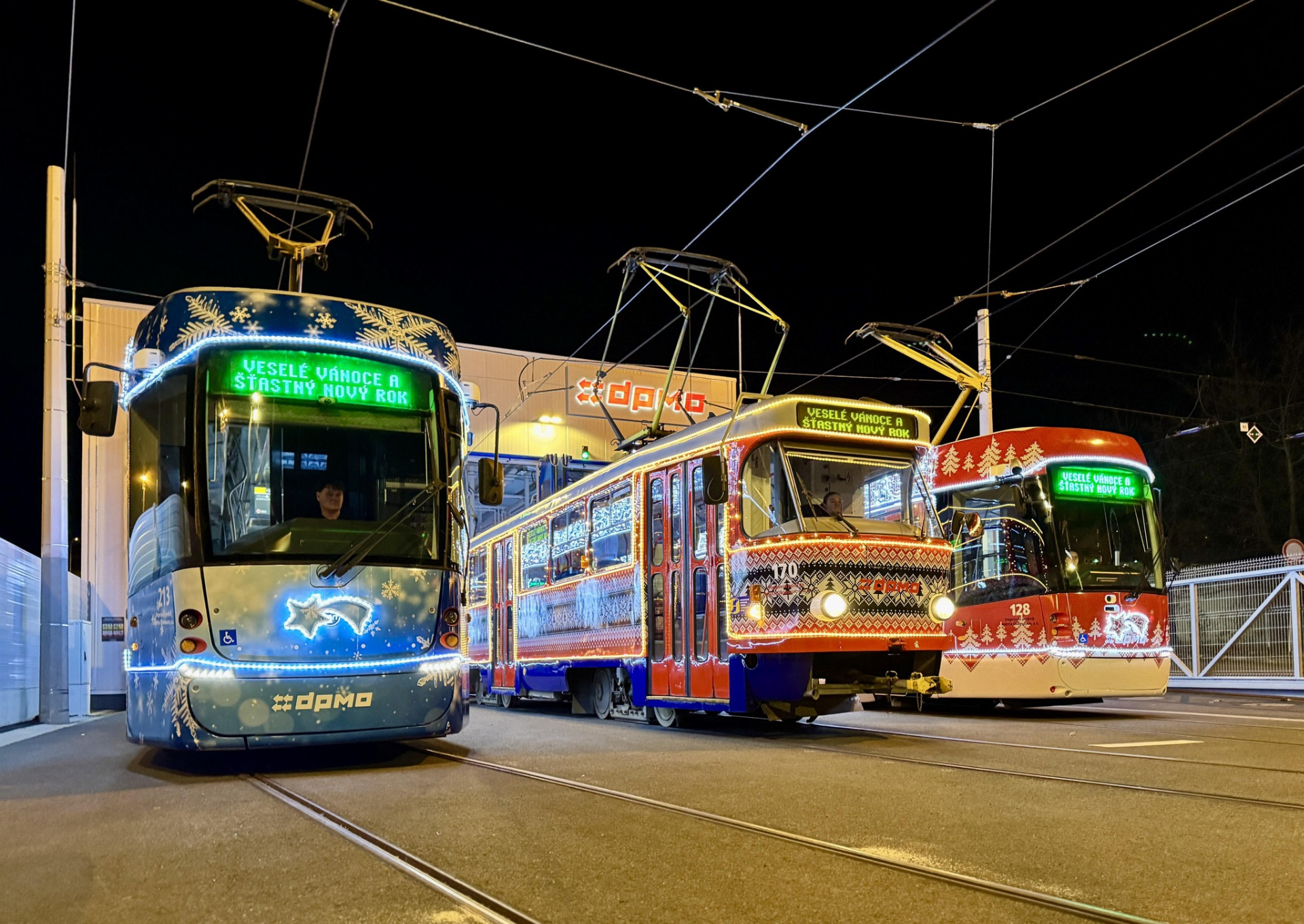 Atmosféru vánoční Olomouce dotváří každý rok i vánoční tramvaje. Letos do ulic vyrazily dokonce už tři kompletně upravené soupravy svátečně nazdobených vozů. K tramvajím T3 a EVO1 se přidala souprava nejnovějších oboustranných vozů EVO1/o. Vyzdobené tramvaje tak pokrývají všechny konečné zastávky ve městě.
