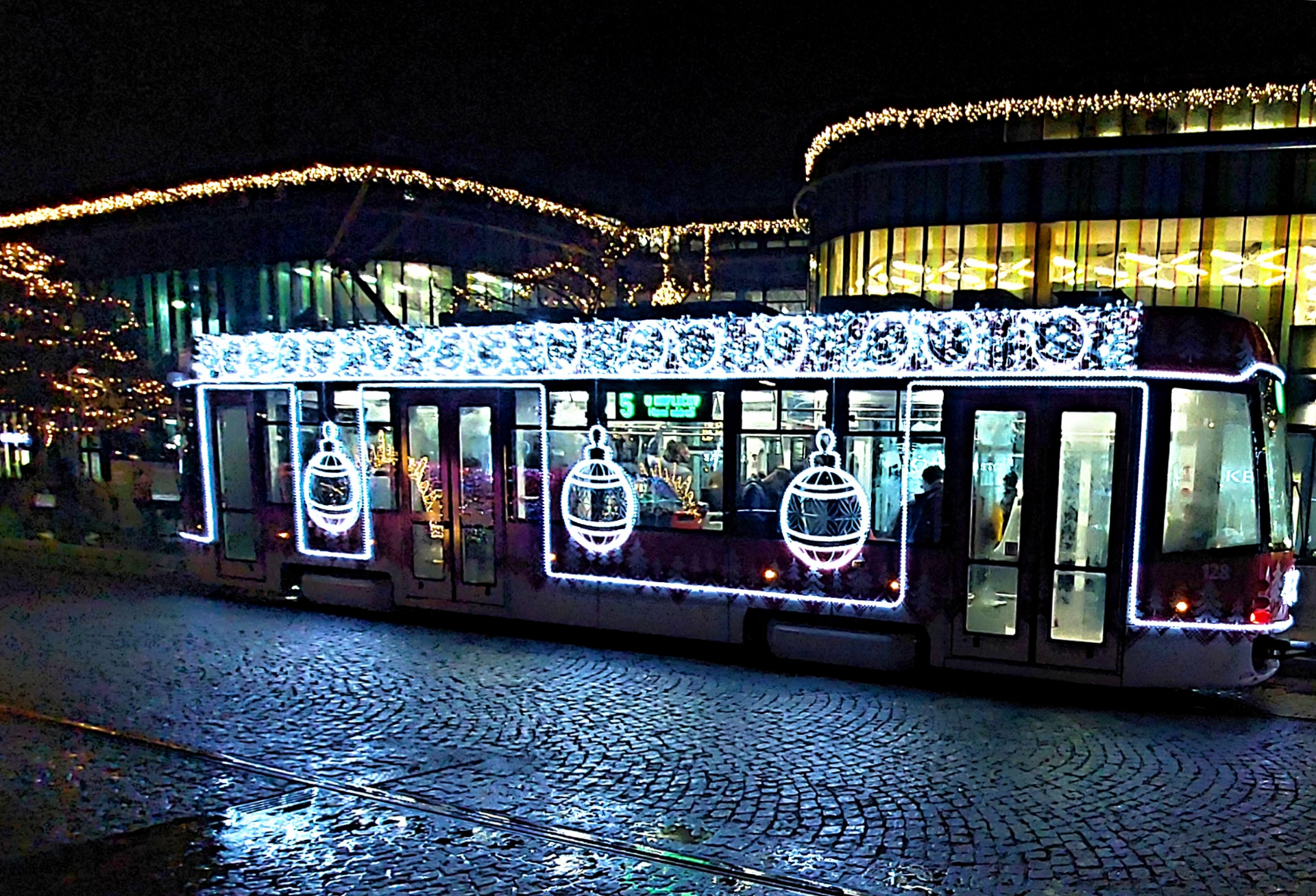 Dvě soupravy tentokrát dostaly motiv svetru, třetí potom zimní motiv se sněhovými vločkami. Vánoční vozy jsou v provozu od neděle 23. listopadu, nasazeny jsou na linkách číslo 2 (souprava T3), číslo 4 (souprava EVO1) a linkách číslo 3 a 5 (souprava EVO1/o). Jízdní řády vozů se liší ve všední dny a víkendy.