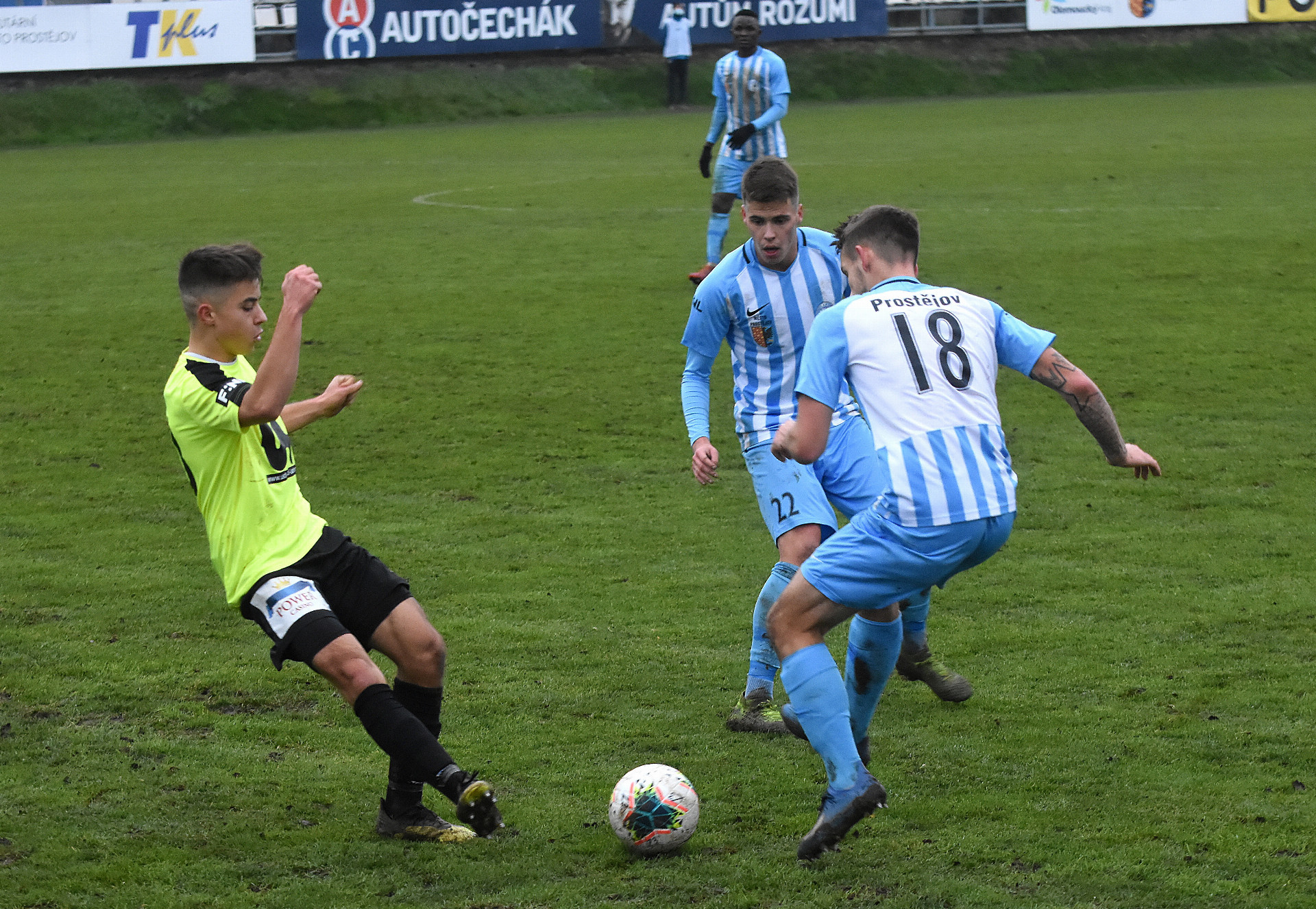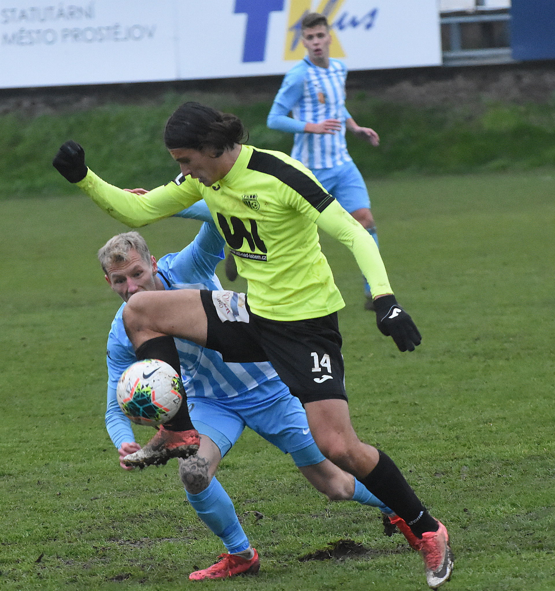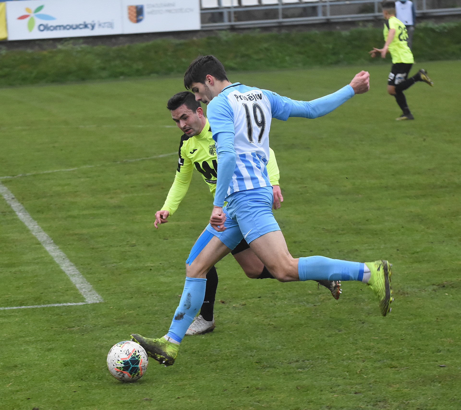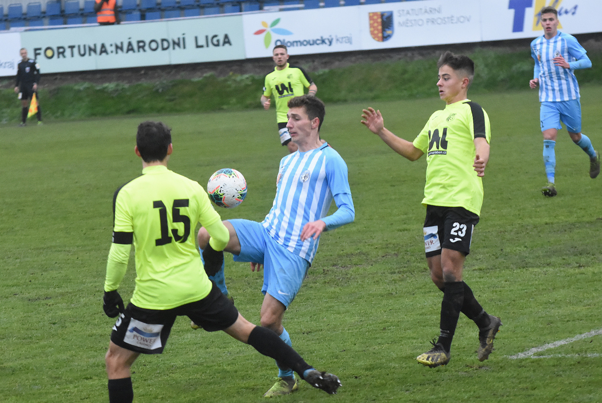 Na těžkém terénu se hrál dlouho vyrovnaný duel bez větších šancí. Ale nebezpečnější pak byli domácí. V závěru poločasu ale neproměnili vyložené šance, tu největší měl Zikl. Podobné to bylo i po přestávce, to měl zase velkou šanci Zikl. Ale brankář Tvrdoň zkazil Prostějovu radost. Byl to zlomový moment utkání, chvíli poté šli totiž hosté do vedení z docela přísně nařízené penalty. Srovnat mohl nebezpečný Zikl, nejprve mu brankář další tutovku vyrazil znovu na roh, pak z malého vápna minul.