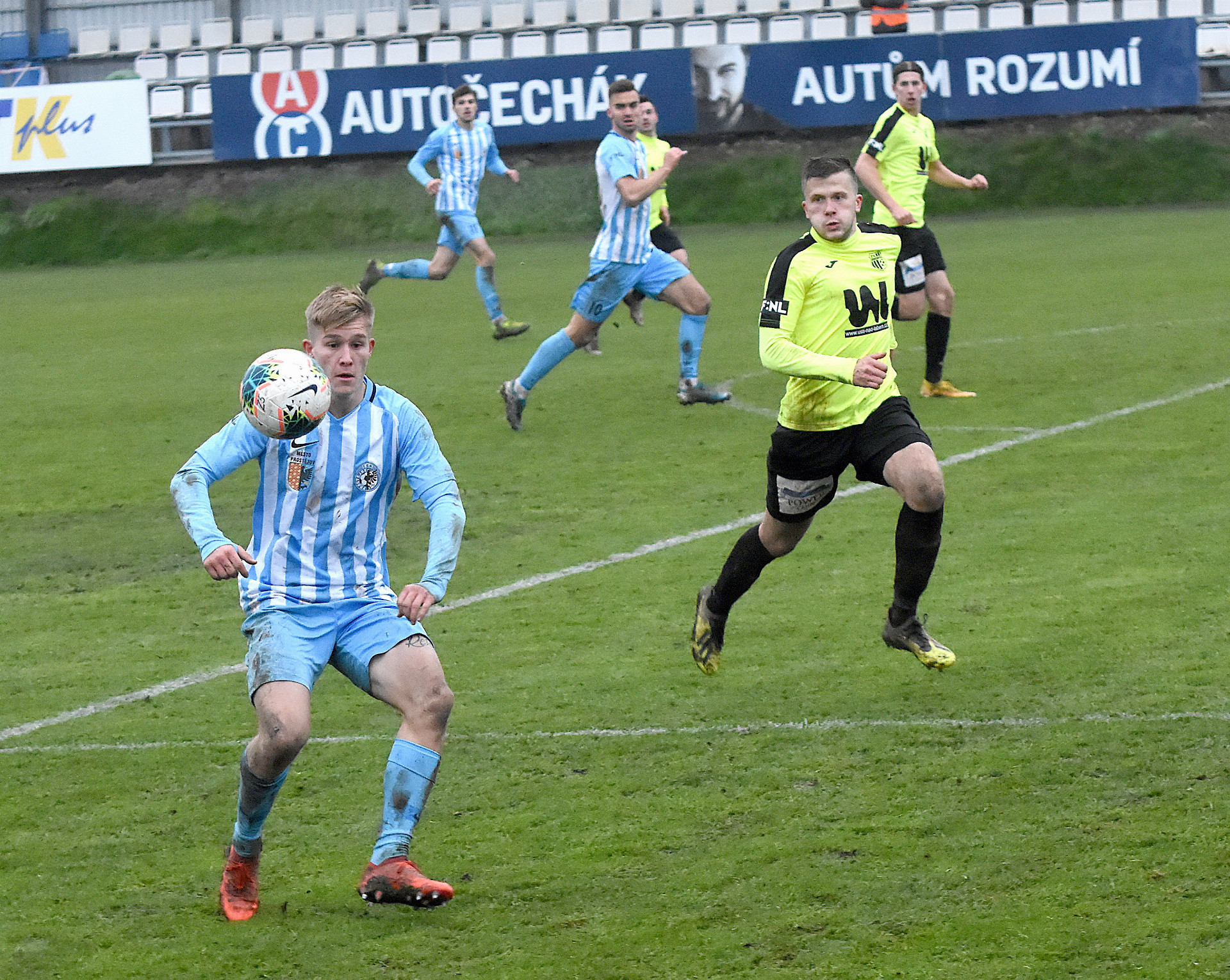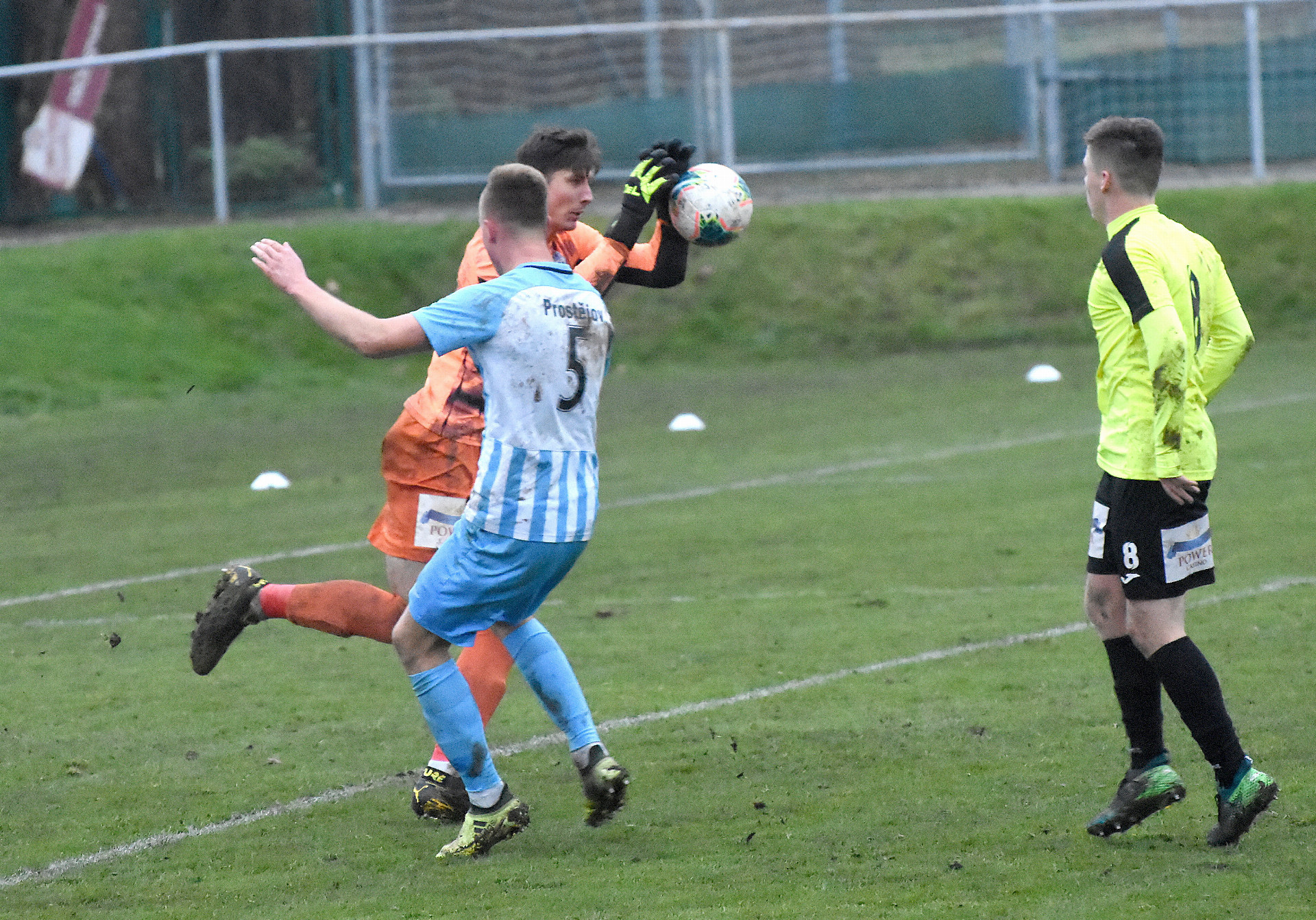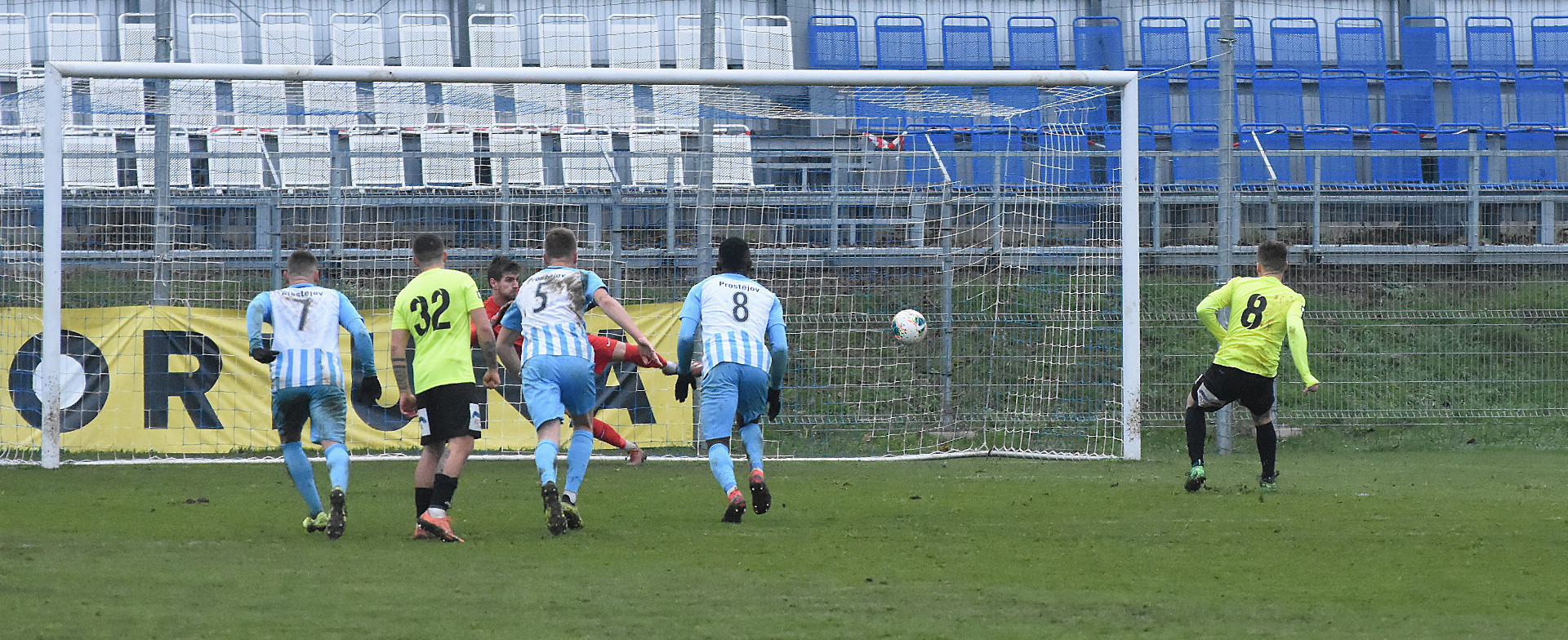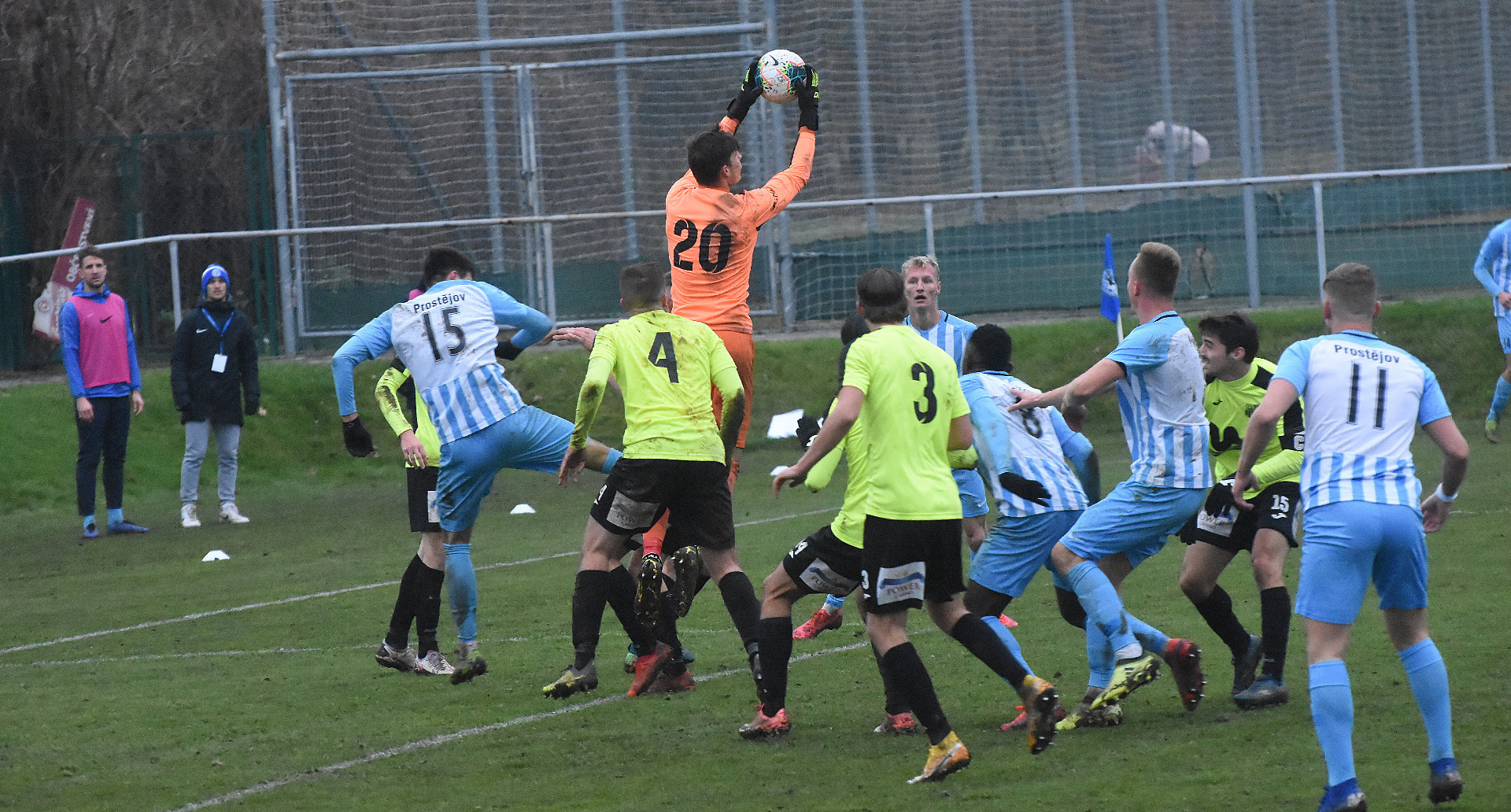 Na těžkém terénu se hrál dlouho vyrovnaný duel bez větších šancí. Ale nebezpečnější pak byli domácí. V závěru poločasu ale neproměnili vyložené šance, tu největší měl Zikl. Podobné to bylo i po přestávce, to měl zase velkou šanci Zikl. Ale brankář Tvrdoň zkazil Prostějovu radost. Byl to zlomový moment utkání, chvíli poté šli totiž hosté do vedení z docela přísně nařízené penalty. Srovnat mohl nebezpečný Zikl, nejprve mu brankář další tutovku vyrazil znovu na roh, pak z malého vápna minul.