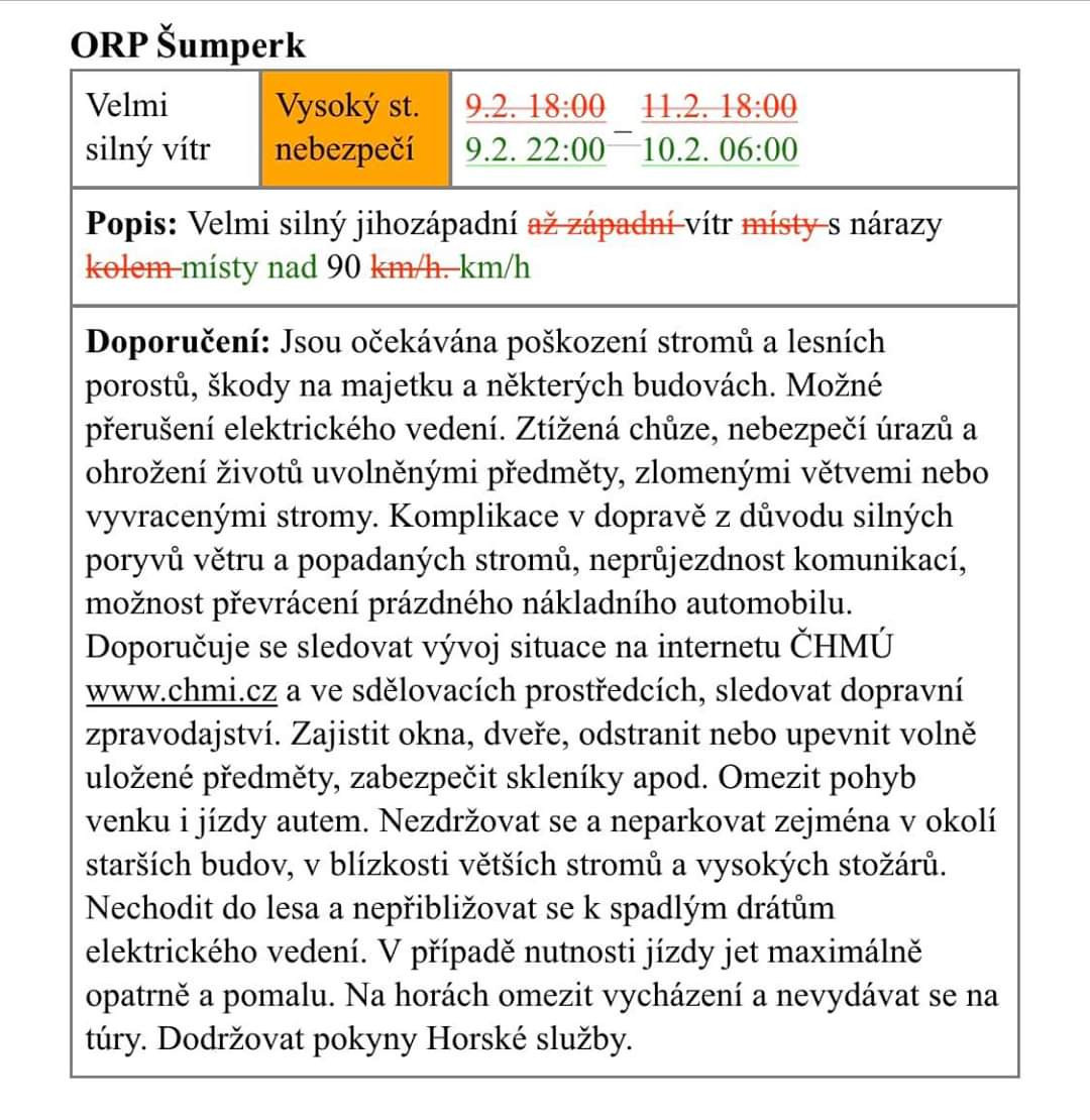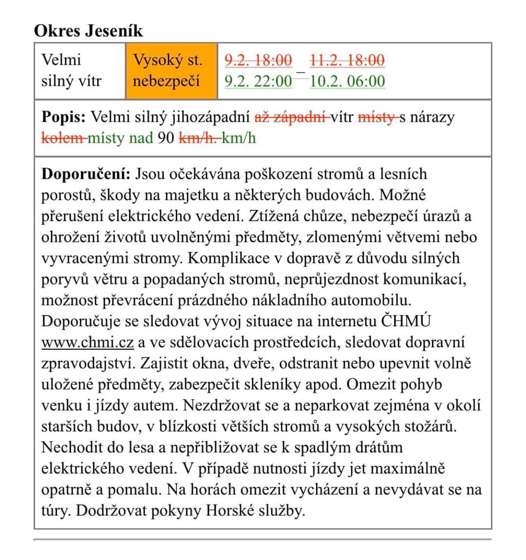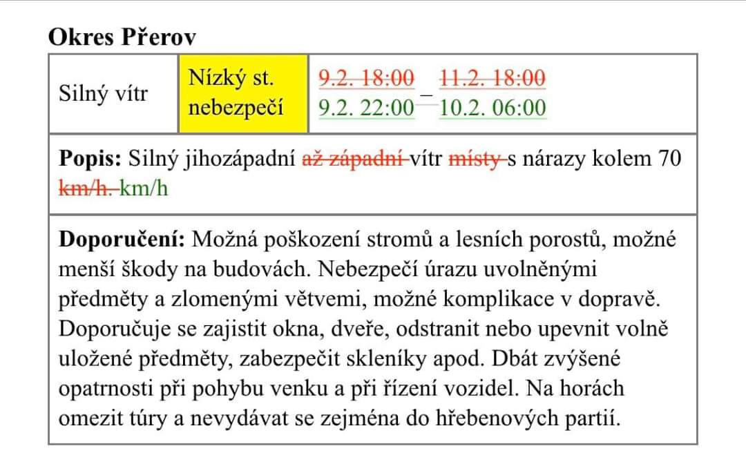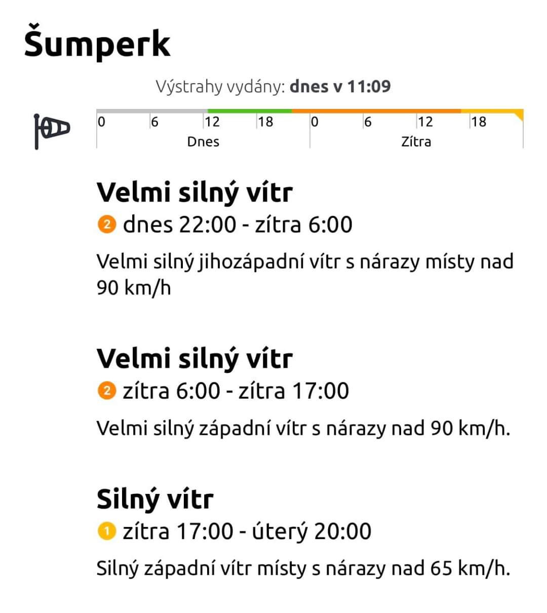 Upozornění na velmi silný vítr platí do úterního večera. Meteorologové lidem radí, aby sledovali aktuální situaci, zajistili okna a dveře, odstranili, případně upevnili volně uložené předměty a omezili pohyb venku i jízdu autem. Na horách mají omezit vycházení, nevydávat se na túry a respektovat pokyny horské služby.