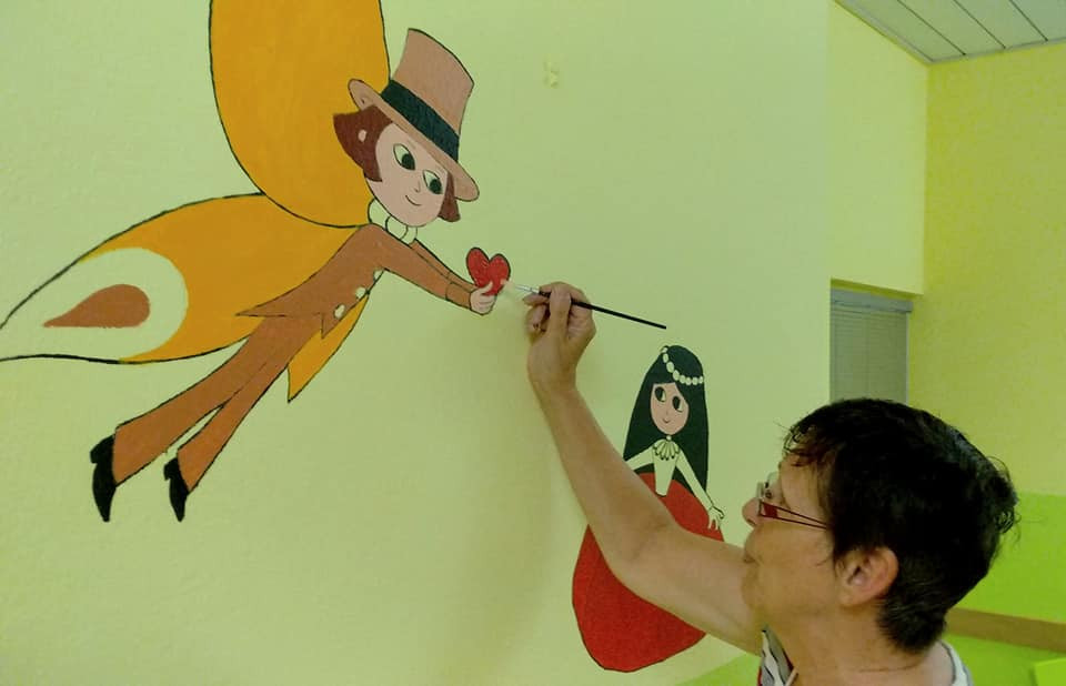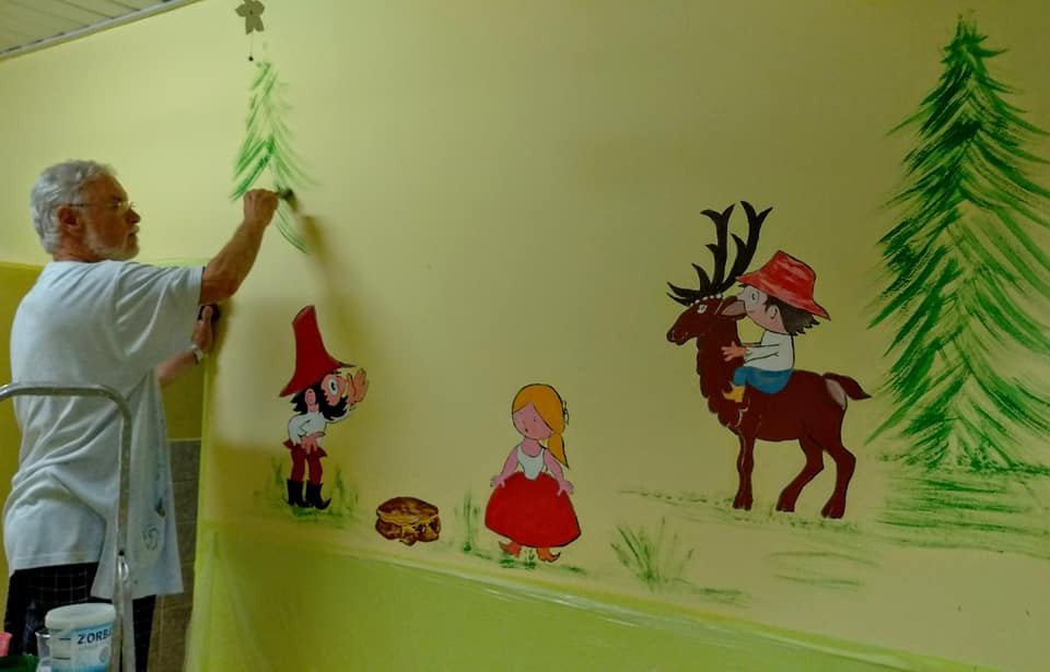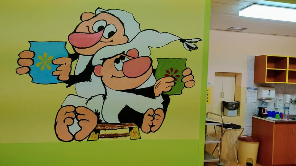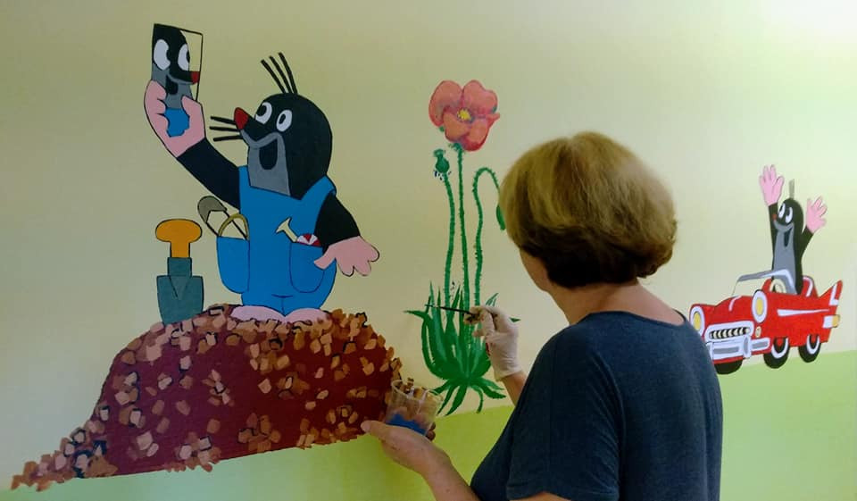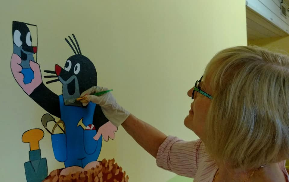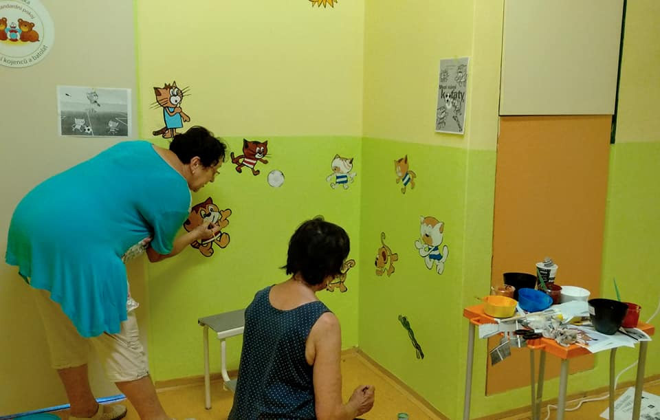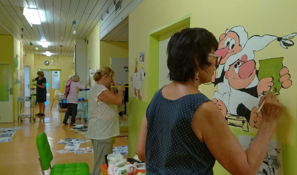 Parta 11 univerzitních seniorů v polovině června obsadila chodby dětského oddělení a v neuvěřitelně krátkém čase, během jednoho dne, je vyzdobila celkem 16 motivy pohádkových a večerníčkových postaviček. Na přípravu přitom měli jen cca 2–3 týdny. Současný prostor oddělení je nyní od předchozího k nepoznání a místní sestřičky i děti z toho mají radost.