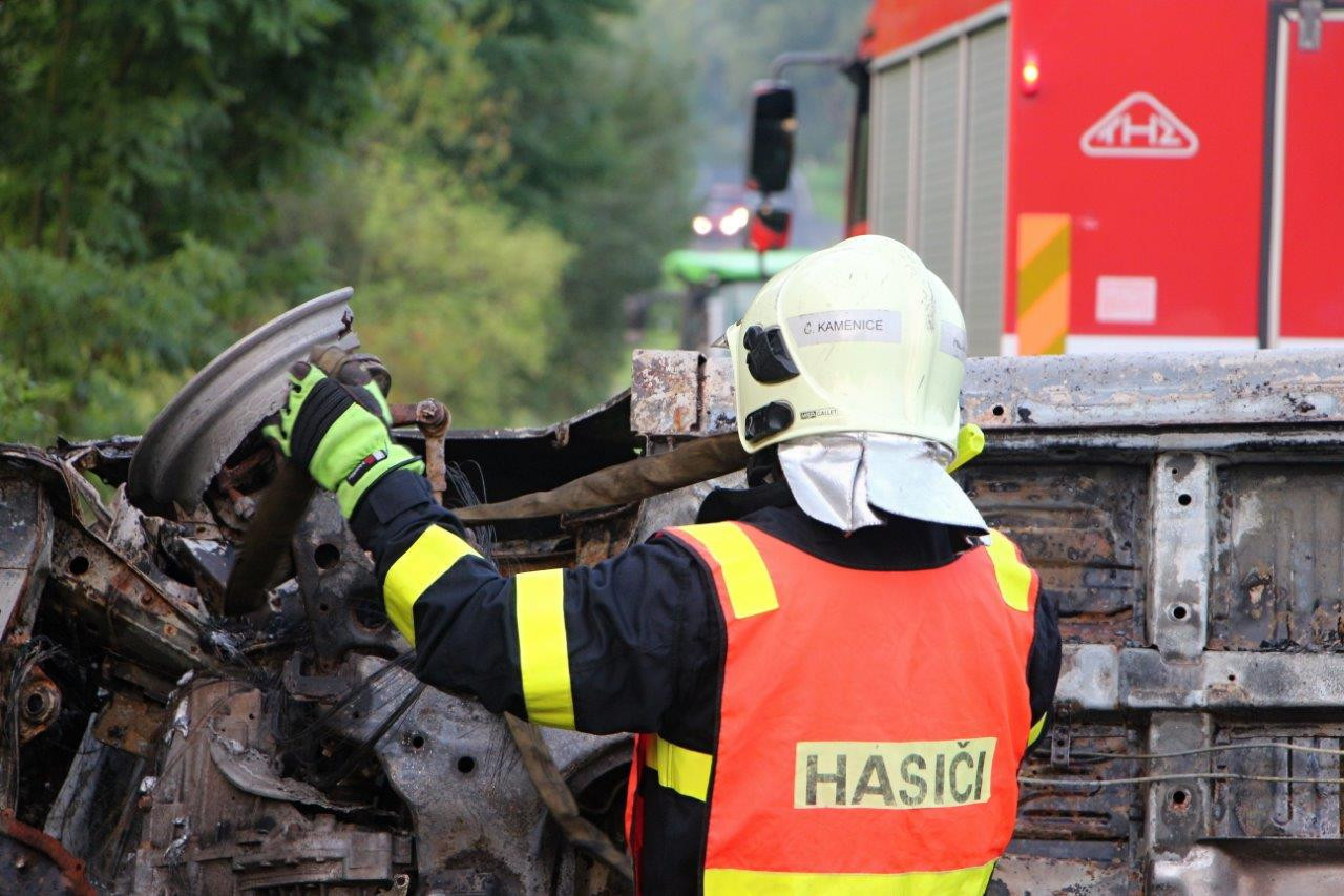 Jednotka HZS ÚK ze stanice Chomutov a železniční jednotka vyjely k dopravní nehodě osobního auta a vlaku na přejezdu v Kmochově ulici Chomutově.